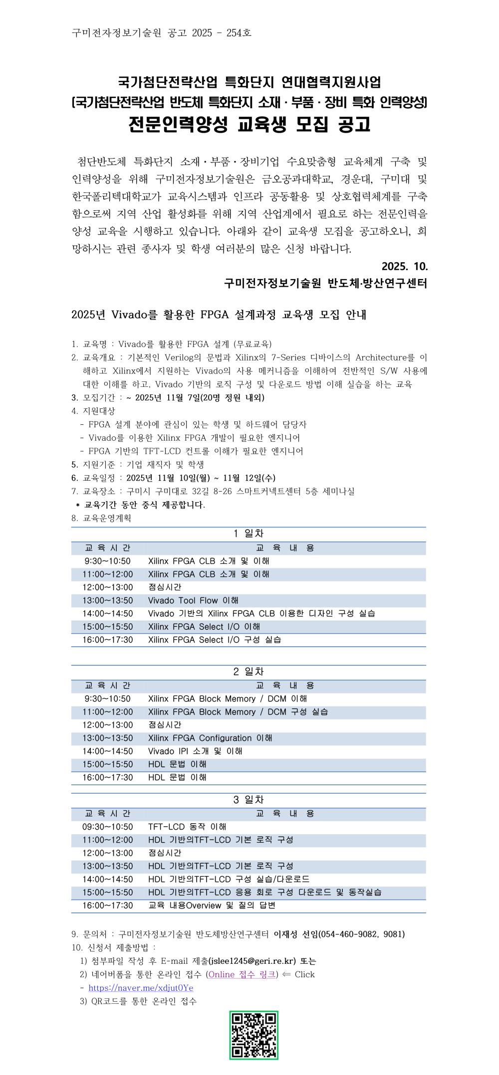 2025년 국가첨단전략산업 특화반지 연대협력지원사업 Vivado를 활용한 FPGA 설계과정 교육생 모집 안내(11월).pdf