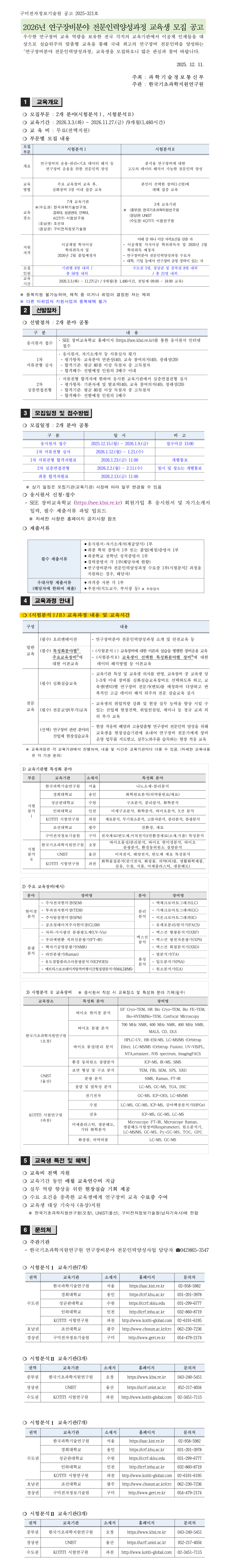 2026년 연구장비분야 전문인력양성과정 교육생 모집 공고