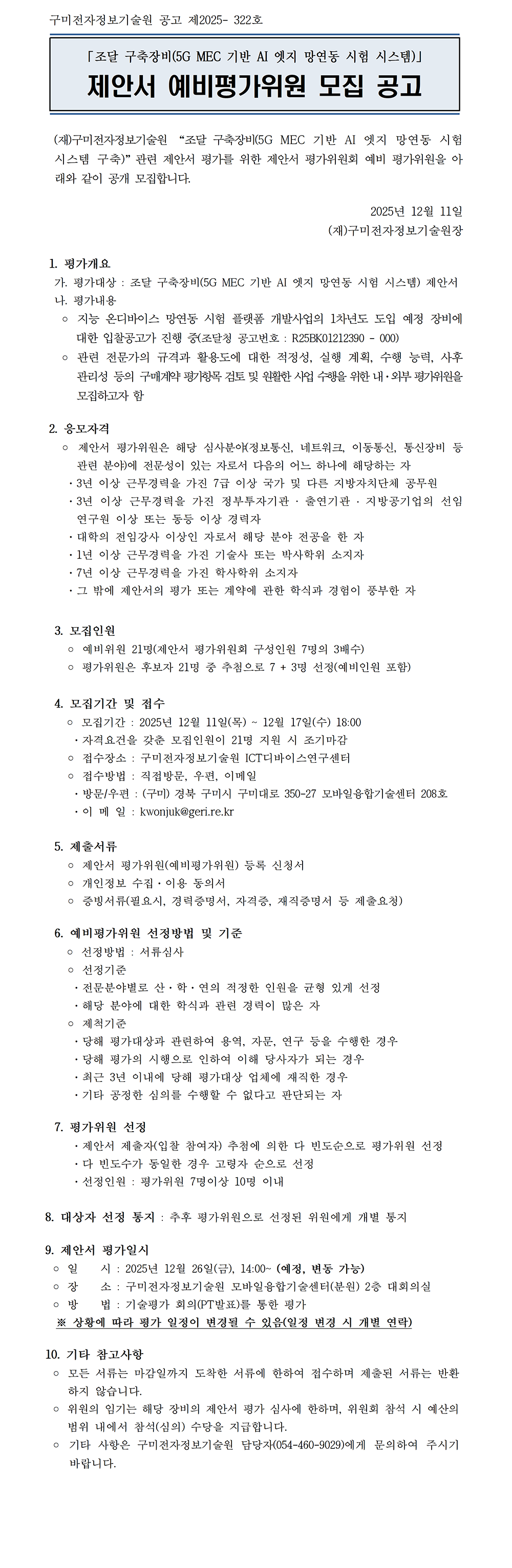 「조달 구축장비(5G MEC 기반 AI 엣지 망연동 시험 시스템)」 제안서 예비평가위원 모집 공고.pdf
