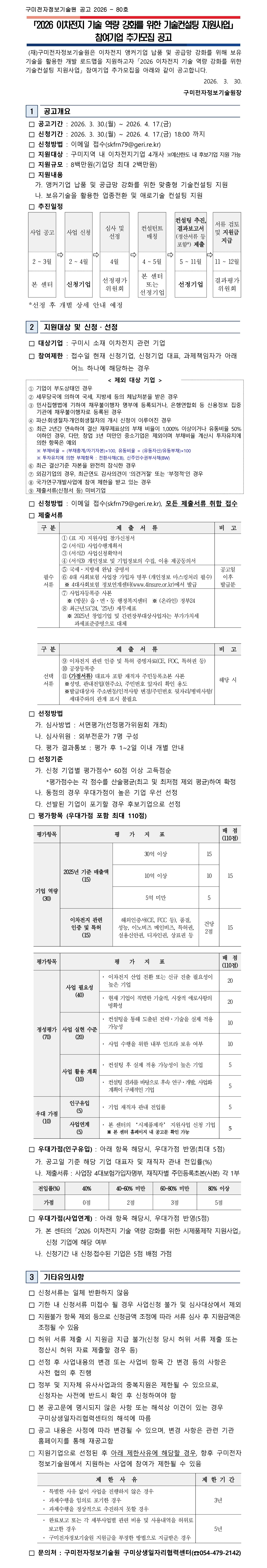 「2026 이차전지 기술 역량 강화를 위한 기술컨설팅 지원사업」 참여기업 추가모집 공고