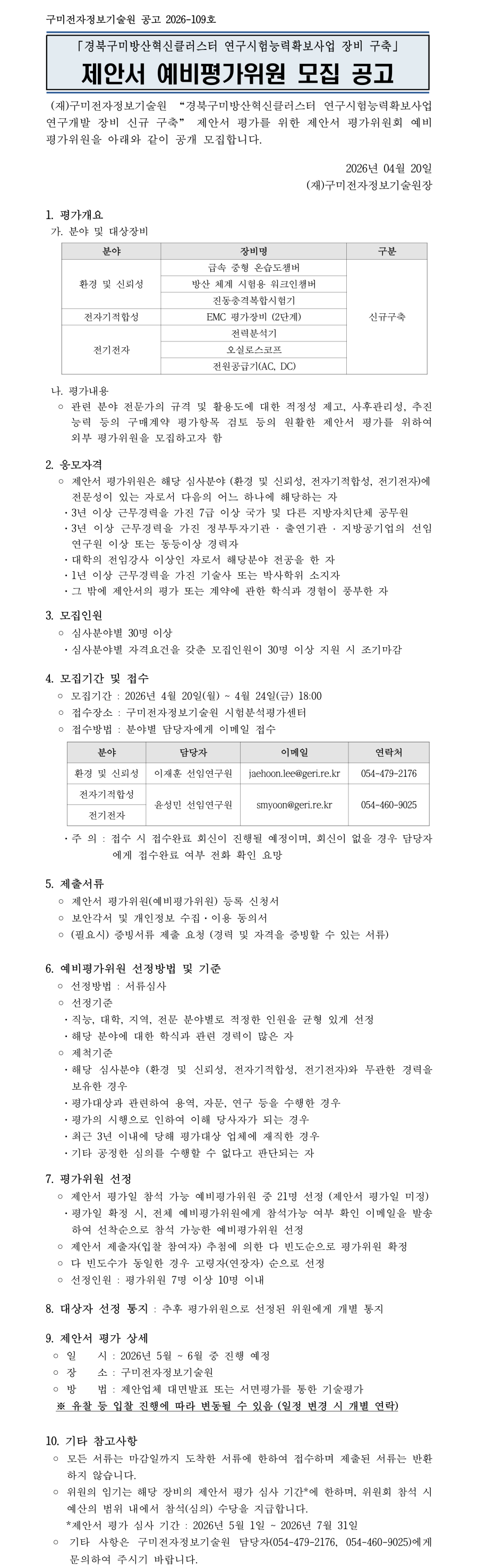 (공고문) 경북구미 방산혁신클러스터 연구시험능력 확보사업 장비구축 제안서 예비평가위원 모집 공고.pdf
