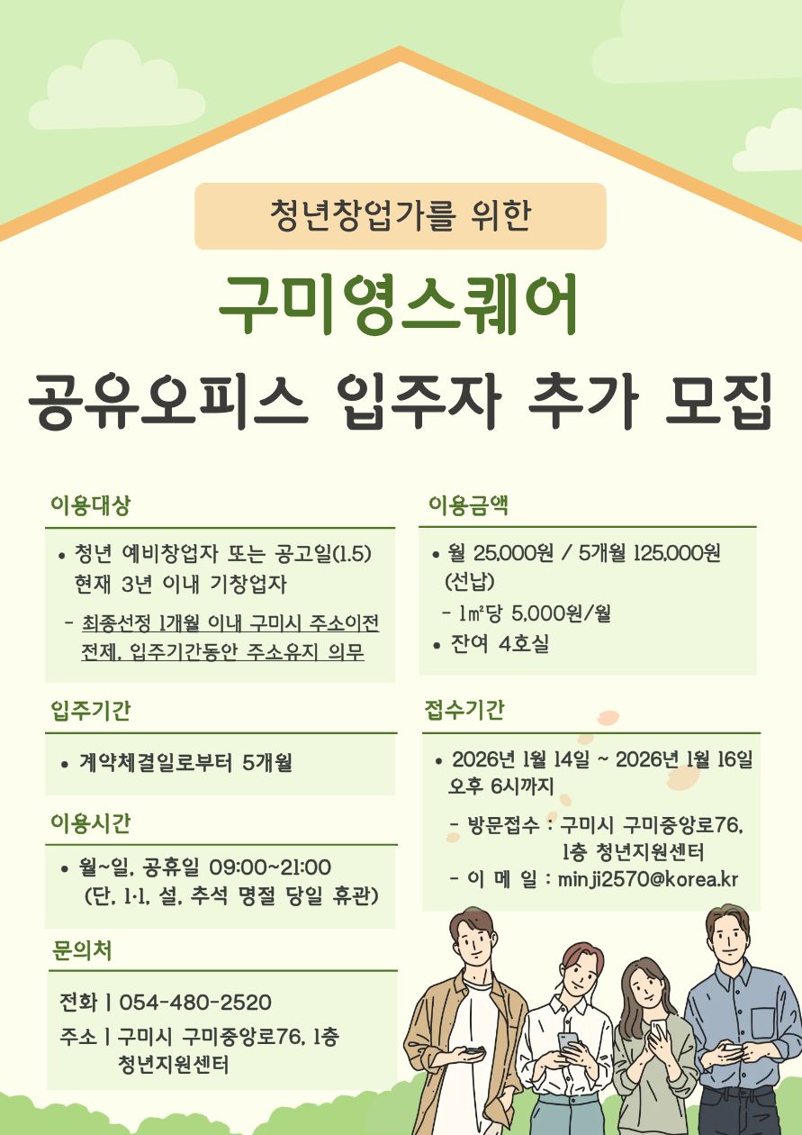 [타기관소식] 구미영스퀘어 공유오피스 입주자 추가 모집