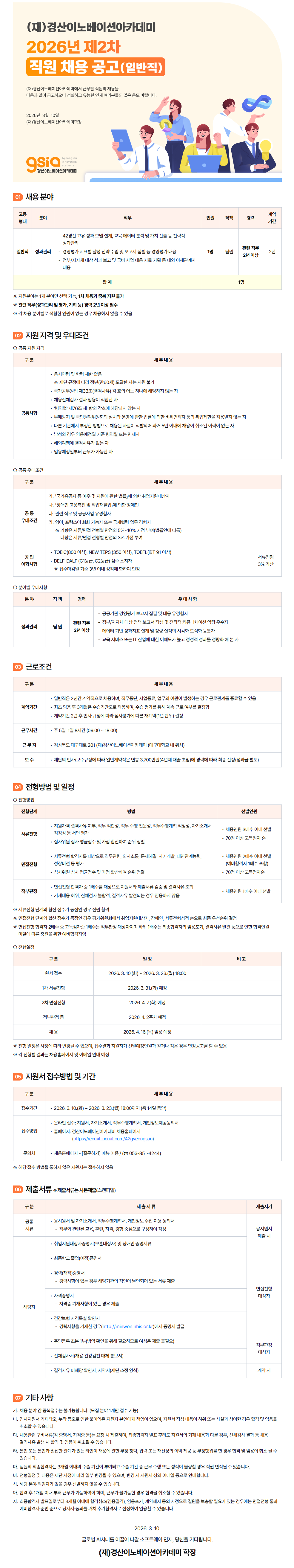 [타기관 소식] (재)경산이노베이션아카데미 2026년 제2차 직원 채용