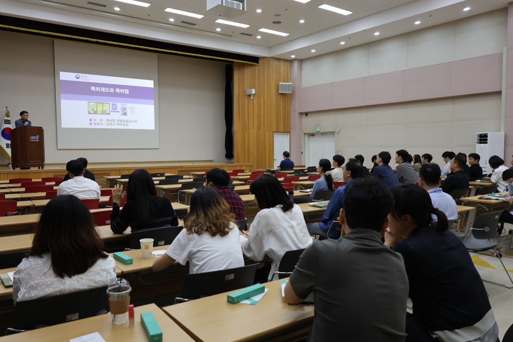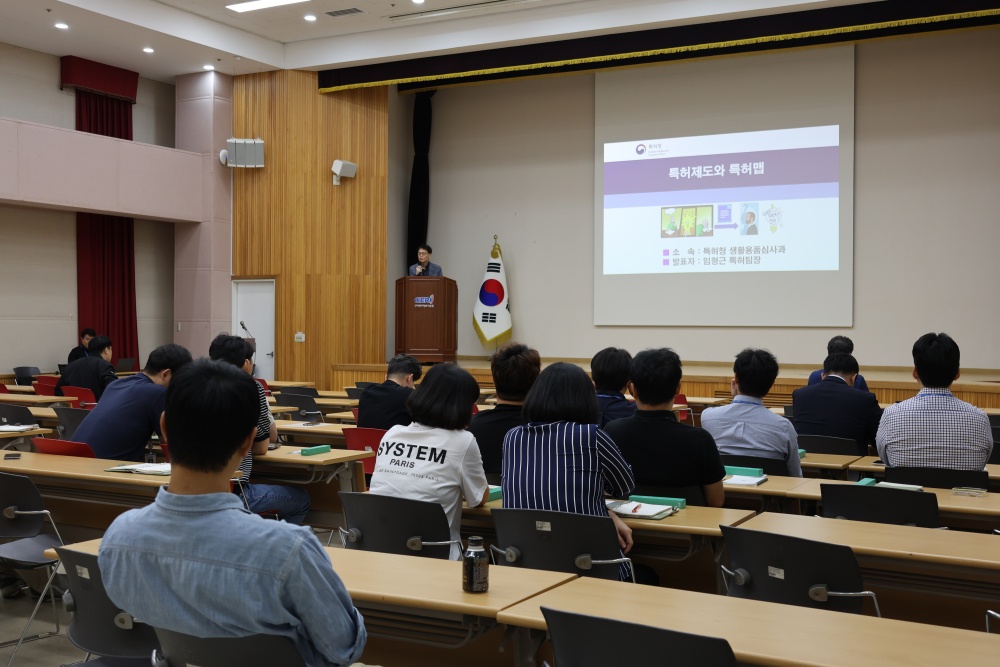 특허청 생활용품심사과 임형근 팀장은 창의적인 기술을 법적으로 보호하고, 이를 통해 기업 경쟁력을 강화할 것을 강조하며 직원들의 특허제도 및 지식재산권의 이해도를 높였습니다.