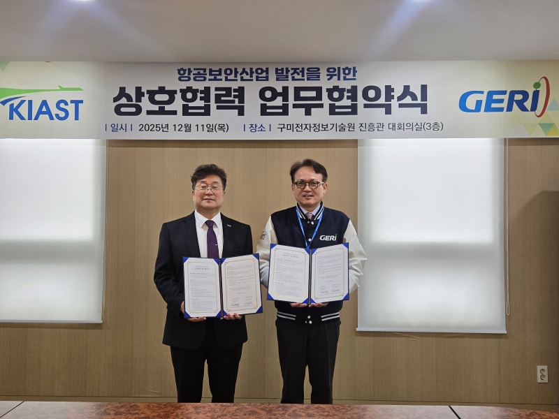 구미전자정보기술원(GERI)은 2025년 12월 11일(목), 본관 대회의실(3층)에서 「항공보안산업 발전을 위한 상호협력 업무협약식」을 개최하였습니다.