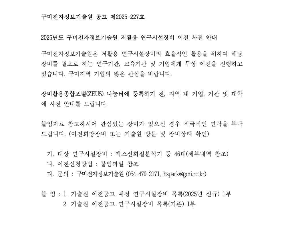 2025년도 구미전자정보기술원 저활용 연구시설장비 이전 사전 안내.pdf