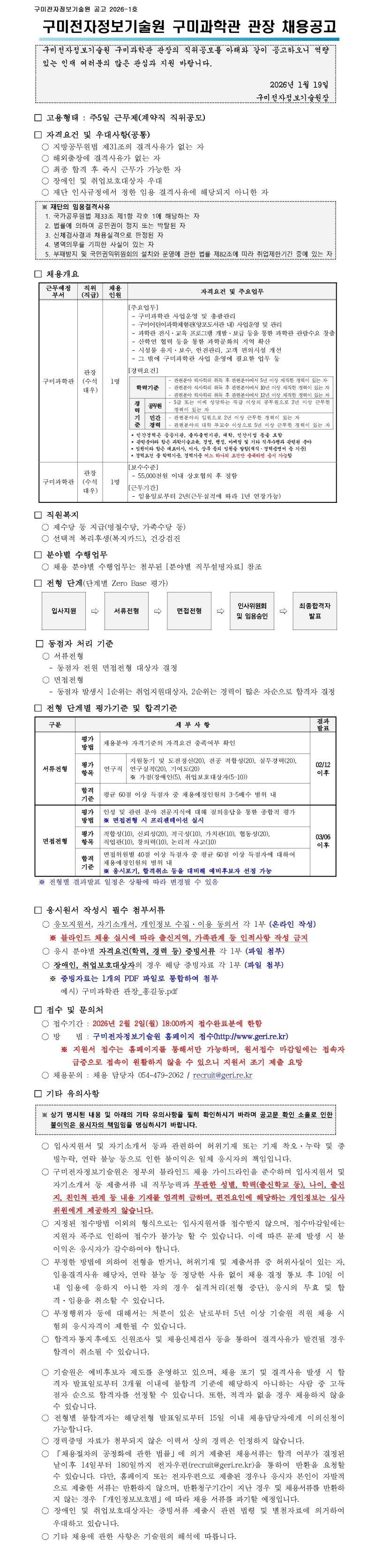 [채용공고] 2026-1호 구미전자정보기술원 구미과학관 관장 채용공고